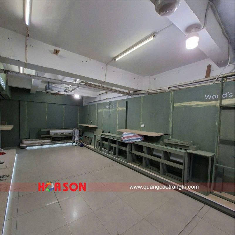 Hoa Sơn là một trong những đơn vị được nhiều doanh nghiệp bán lẻ điện máy tin tưởng lựa chọn. Sở hữu xưởng sản xuất trực tiếp cùng đội ngũ kỹ thuật giàu kinh nghiệm. Hoa Sơn đã và đang triển khai hiệu quả các dự án kệ ốp vách trưng bày tivi theo yêu cầu, từ quy mô nhỏ đến hệ thống lớn.
